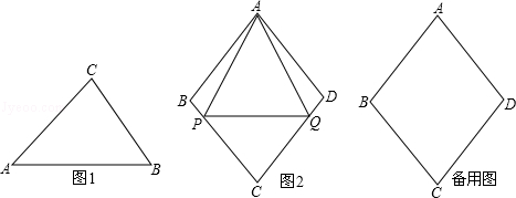 (3)如图2,已知菱形ABCD的边长为a,∠ABC=2β,点P,Q从点A同时出发,以相同速度分别沿折线AB-BC和AD-DC向终点C运动,记点P经过的路程为s.当β=45°时,若△APQ是“好玩三角形”,试求$\frac{a}{s}$的值.