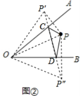 (2)解:①如图,作P关于OA,OB的对称点P′,P″.连接P′P″交OA、OB于C、D,.则此时△PMN的周长最短,最短的值是P′P″的长.