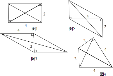 解答 解:图1是矩形,两条对角线长相等,均为2$\sqrt{5}$;