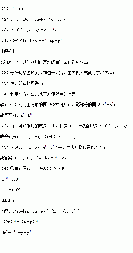 (1)如图1,可以求出阴影部分的面积是 (写成两数平方差的形式);