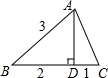 ∴AD=$\sqrt{A{B}^{2}-B{D}^{2}}$=$\sqrt{{3}^{2}-{2}^{2}}$=$\sqrt{5}$
