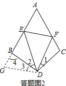·ÖÎö £¨2£©¢ÙÊ×ÏÈÑÓ³¤FDµ½G£¬Ê¹µÃDG=DF£¬½ø¶øµÃ³öCF=BG£¬DF=DG£¬ÒÔ¼°EF=EG£¬ÔÙÀûÓÃÈý½ÇÐÎÈý±ß¹ØÏµµÃ³ö´ð°¸£»