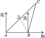 (2)过点B作AC的垂线,垂足为D,依题意可得∠DAB=45°,∠DBA=45°,AB=60海里.