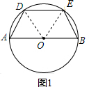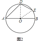 解:(1)如图1,连接OD,OE,则OA=OD=OE=OB,