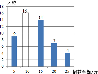 (2)捐款是10元的人数是:50-9-14-7-4=16(人).