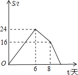 当在第6天时,库存物资应该有24吨,在第8天时库存16吨,