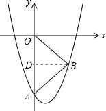 分析 作BD⊥y轴于D,根据等腰三角形的性质得出OD=AD,进而根据O、A的坐标求得D的坐标,即可求得B的纵坐标,代入解析式求得B的坐标,从而得出OD=BD,所以△OBD是等腰直角三角形,那么∠AOB=45°.