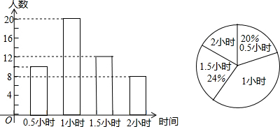 (2)利用总人数乘以百分比即可求得时间是1.5小时的一组的人数,即可作出直方图;