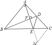 分析 过C作CM⊥AC,交AE的延长线于M,推出CM∥AB,推出∠MCE=∠ABC=∠ACB,求出∠ABD=∠CAM,证△ABD≌△CAM,推出∠ADB=∠M,AD=CM=AD,证△CDE≌△CME,于是得到DE=EM,于是问题即可得证.