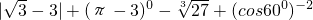 点评:(1)本题考查了绝对值、0指数幂、立方根、特殊角的三角函数值及负整数指数幂,是一道常见的实数运算题目;