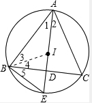 分析:(1)连接BI,根据I是△ABC的内心,得出∠1=∠2,∠3=∠4,再根据∠BIE=∠2+∠3,∠IBE=∠5+∠4,而∠5=∠1=∠2,得出∠BIE=∠IBE,即可证出IE=BE.