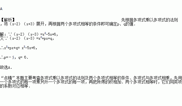 如果(x﹣2)(x﹣3)=x2+px+q,那么p、q的值是( )