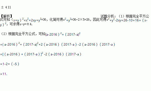 ⑵已知(2016-a)(2017-a)=5,(a-2016)2+(2017-a)2的值为_______