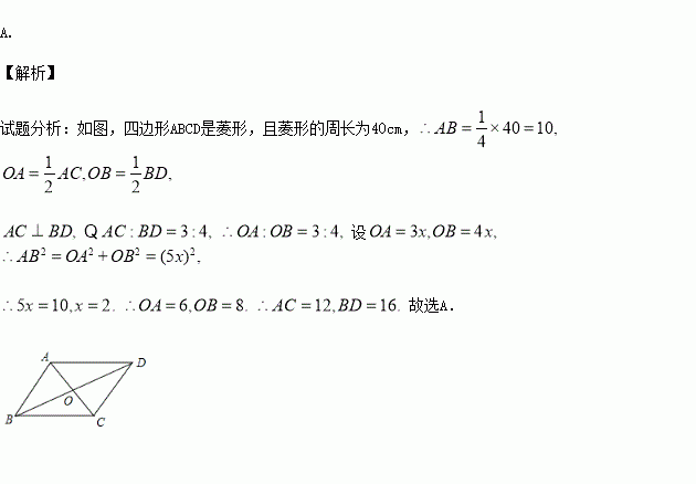 已知菱形的周长为40 cm,两对角线长度比为3:4,则对角线长分别为( )