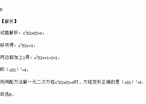 用配方法解一元二次方程x2﹣2x﹣3=0时,方程变形正确的是( )