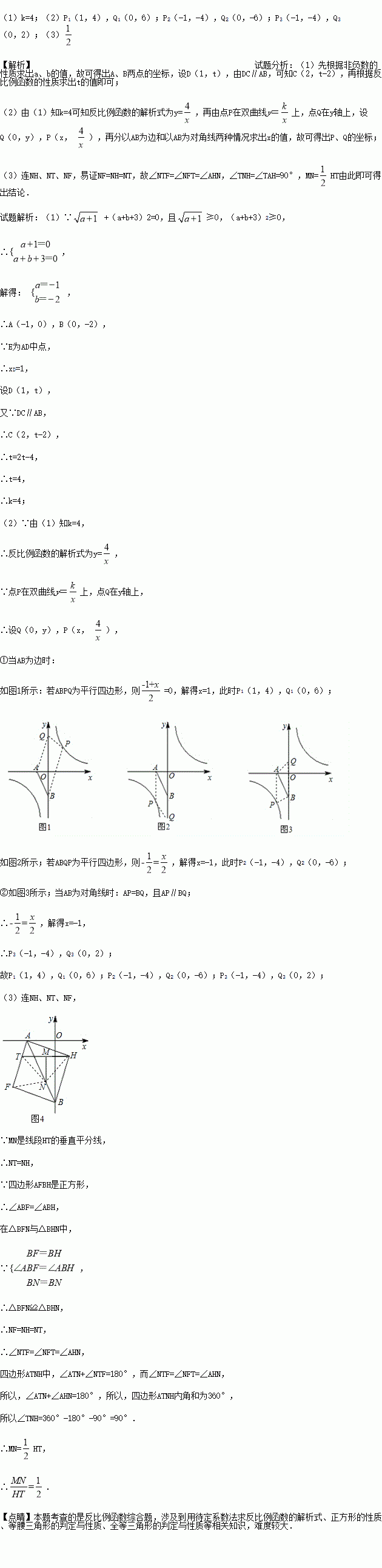 £¨3£©ÒÔÏß¶ÎABΪ¶Ô½ÇÏß×÷Õý·½ÐÎAFBH£¨Èçͼ3£©£¬µãTÊDZßAFÉÏÒ»¶¯µã£¬MÊÇHTµÄÖе㣬MN¡ÍHT£¬½»ABÓÚN£¬µ±TÔÚAFÉÏÔ˶¯Ê±£¬