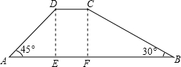 分析:分别过D、C作下底AB的垂线,设垂足为E、F.在Rt△ADE和Rt△BCF中,可根据h的长以及坡角的度数或坡比的值,求出AE、BF的长,进而可求得AB的值.