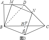 ②连接BD,如图3所示,由AD与MD求出AM的长,利用勾股定理求出BD的长,进而求出BC与CD,过E作EH⊥BC于H,利用AAS得出三角形BAM与三角形HBE全等,求出EH与BH的长,由三角形BHE与三角形EHF相似,得比例求出CF的长,再由EH的长,利用三角形面积公式求出三角形FEC的面积即可.