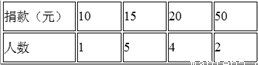 某班第一组12名同学在“爱心捐款”活动中,捐款情况统计如下表,则捐款数组成的一组数据中,中位数与众数分别是( )