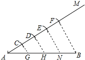 分析 ①作射线M,②在射线AM上顺次截取AC=CD=DE=DF,③连接FB,分别过点C、D、E作FB的平行线,交AB于G、H、N.