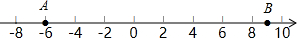·ÖÎö £¨1£©ÓɵãA±íʾµÄÊýÊÇ-6£¬µãBÔÚÔµãµÄÓÒ±ßÇÒÓëµãAÏà¾à15¸öµ¥Î»³¤¶È£¬¼´¿ÉµÃ³öµãB±íʾµÄÊý£»