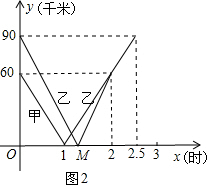 £¨2£©¼×³µµÄº¯ÊýͼÏóÈçͼËùʾ£º¼×³µµÄËÙ¶È60¡Â1=60£¨Ç§Ã×/ʱ£©£¬