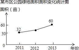 13.市区某公园的总面积为180亩,它的绿化给公园周边的环境带来了明显的改善,如图是该公园绿地面积的变化统计图,其中2013年绿地面积的增长率是2012年增长率的两倍.