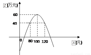 (3)若公司希望该种产品一年的销售获利不低于40万元,借助(2)中函数的图象,请你帮助该公司确定销售单价的范围.在此情况下,要使产品销售量最大,你认为销售单价应定为多少元?![]()