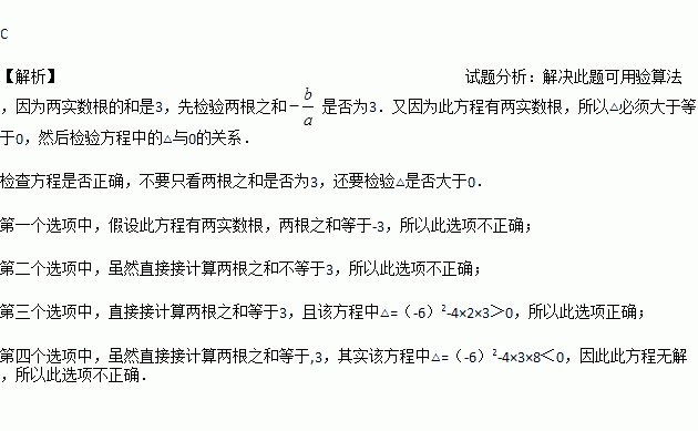 C. 2x2﹣6x+3=0 D. 3x2﹣6x+8=0