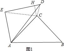 解答 解:当△ABC绕点A逆时针旋转60°得到△ADE的位置,如图1,作CH⊥ED于H,连结CE,