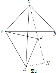 当△ABC绕点A顺时针旋转60°得到△ADE的位置,如图2,连结CE,作DH⊥CE于H,