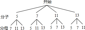 分析 首先根据题意画出树状图,然后由树状图求得所有等可能的结果以及有多少个真分数.