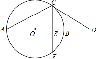 (2)若点F在圆O上,CF⊥AB,垂足为E,CF=4