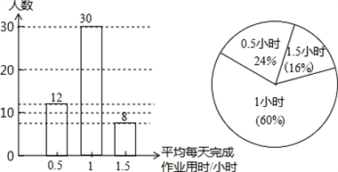 (2)平均每天完成作业用1小时的人数有:50﹣12﹣8=30(人),