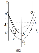 (2)如图1中,由题意可知,C(3,1),作CG∥OB交抛物线于G.x=3时,y=2,推出点G坐标(3,2),所以把抛物线向下平移1个单位即可经过点C,由此即可解决问题.