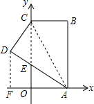 分析 过D作DF⊥x轴于F,根据折叠可以证明△CDE≌△AOE,然后利用全等三角形的性质得到OE=DE,OA=CD=4,设OE=x,那么CE=8-x,DE=x,利用勾股定理即可求出OE的长度,而利用已知条件可以证明△AEO∽△ADF,而AD=AB=8,接着利用相似三角形的性质即可求出DF、AF的长度,也就求出了D的坐标.