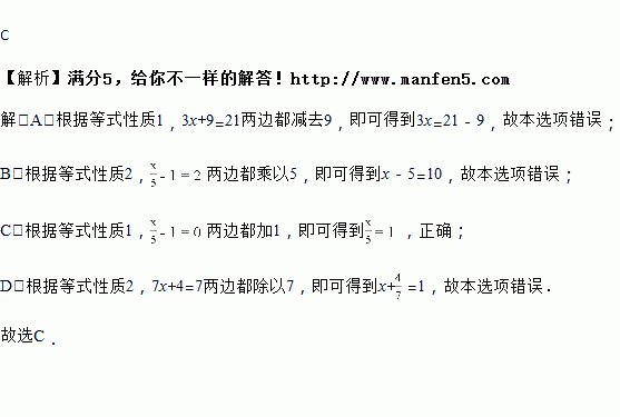 科目:初中数学 来源:华师版2017-2018学年七年级下册第六章一元一次方程复习卷 题型:单选题
