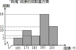 组距是:175-165=10,本次调查的个体是:被抽到的每名九年级学生的跳绳成绩,