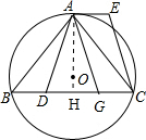 (2)连接AO并延长,交边BC于点H,由等腰三角形的性质和外心的性质得出AH⊥BC,再由垂径定理得BH=CH,得出CG与AE平行且相等.