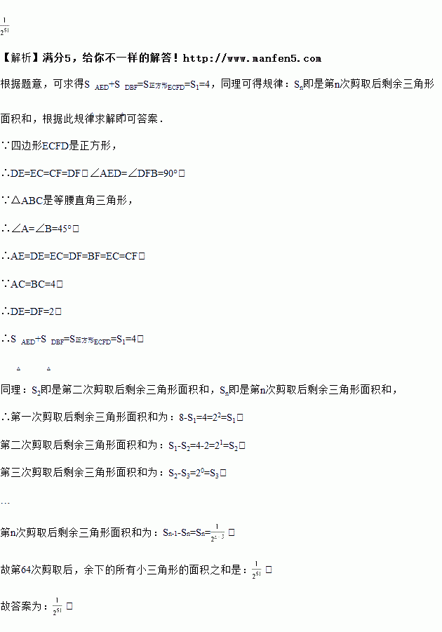 次剪取后,余下的所有小三角形的面积之和是________.![]()