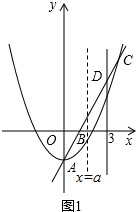 (2)如图1,直线x=3分别交直线AB和抛物线C1于D、E两点.