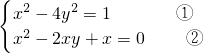 分析:先把x2-2xy+x=0转化成2y=1+x,再代入x2-4y2=1中,求出x的值,再代入2y=1+x中,即可求出y的值,即可求出方程组的解.