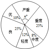 | 空气质量等级 | 优 | 良 | 轻度污染 | 中度污染 | 重度污染 | 严重污染 |