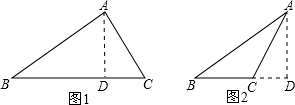 (ii)当△ABC为钝角三角形,过A作AD⊥BC,如图2所示,