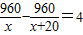 某农场开挖一条长960米的渠道,开工后每天比原计划多挖20米,结果提前4天完成任务,原计划每天挖多少米