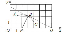 (1)用无刻度的直尺,过点B作与数学公式相切的直线l.并写出数学公式 所在的圆的圆心P坐标;