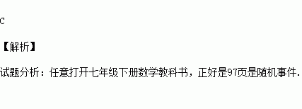 C.任意打开七年级下册数学教科书,正好是97页是确定事件