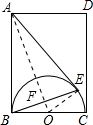 解:取BC的中点O,则O为圆心,连接OE,AO,AO与BE的交点是F;如图所示: