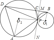 1的切线,不难得出∠MBP=∠MPB,而∠MPB=∠NPA,根据弦切角定理又可得出∠NPA=∠ADP,将相等的角进行置换后即可得出所求的结论;