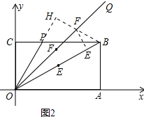 (3)作BH⊥OP于H,交OQ于F,作FE⊥OB于E,E、F即为使BF+EF得最小值的点;如图2所示:![]()